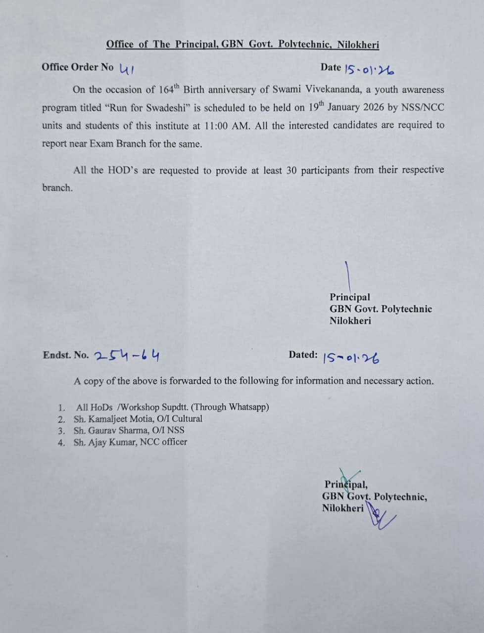 Authorization to sign the documents/forms of NCC students